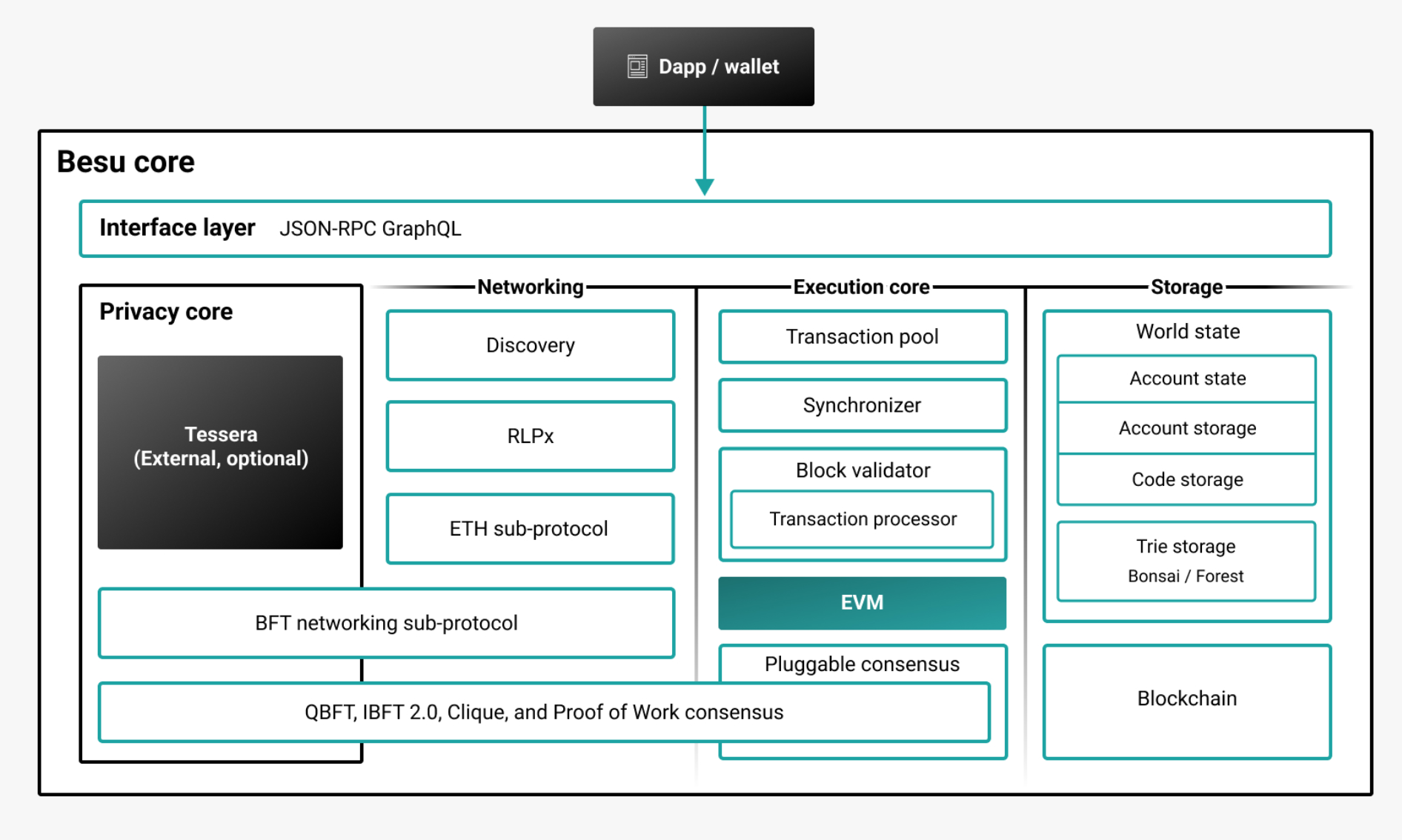 Besu 는 개인 정보 보호 및 권한 부여를 포함한 엔터프라이즈 기능을 지원합니다.